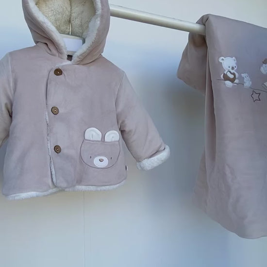 Coperta per neonato realizzata in ciniglia soft, con tenere decorazioni sulla parte superiore. Misure 66 x 86 cm.