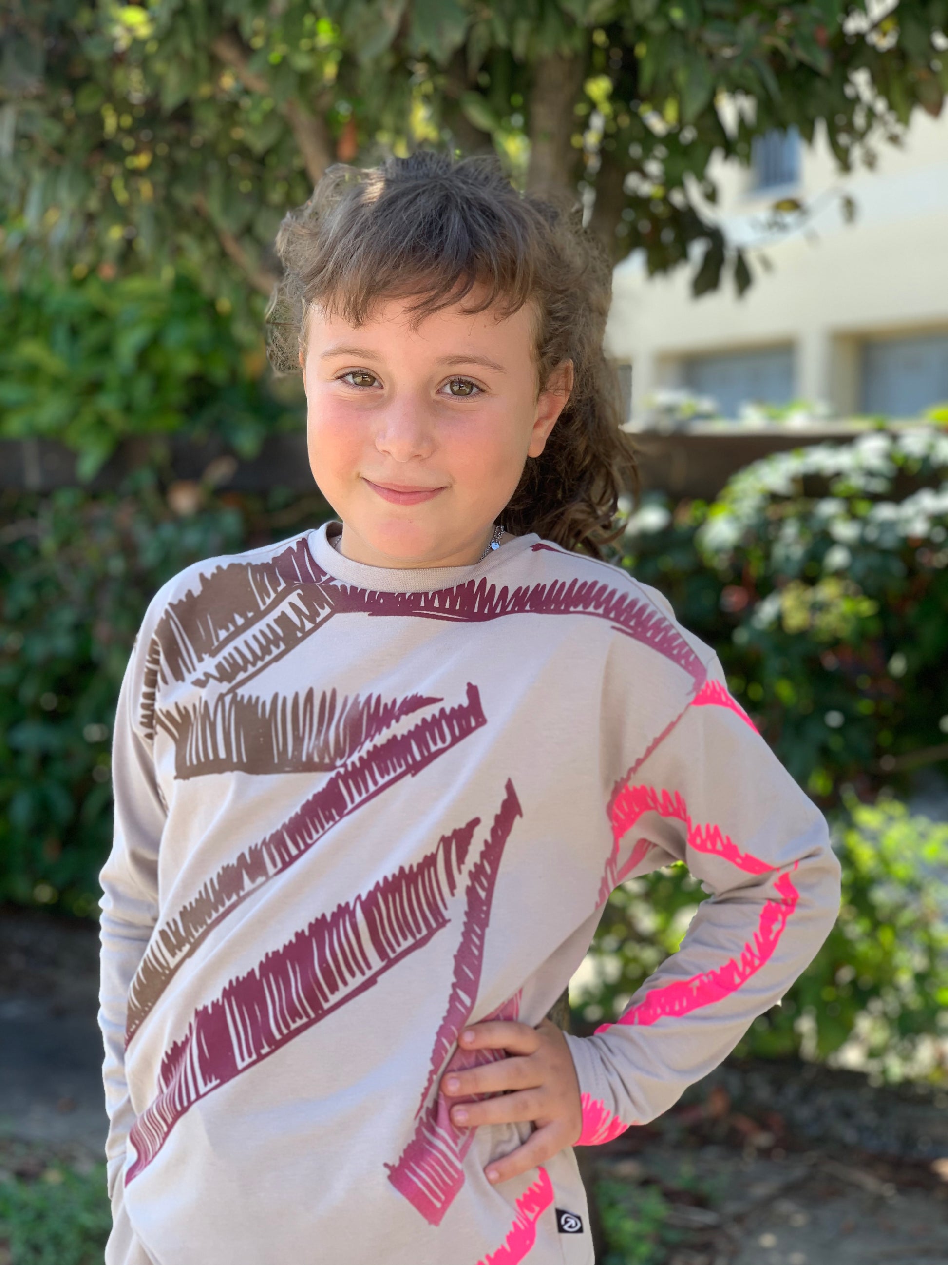 T-shirt girocollo a maniche lunghe per ragazza, realizzata in jersey lavato tinta unita con stampa frontale.